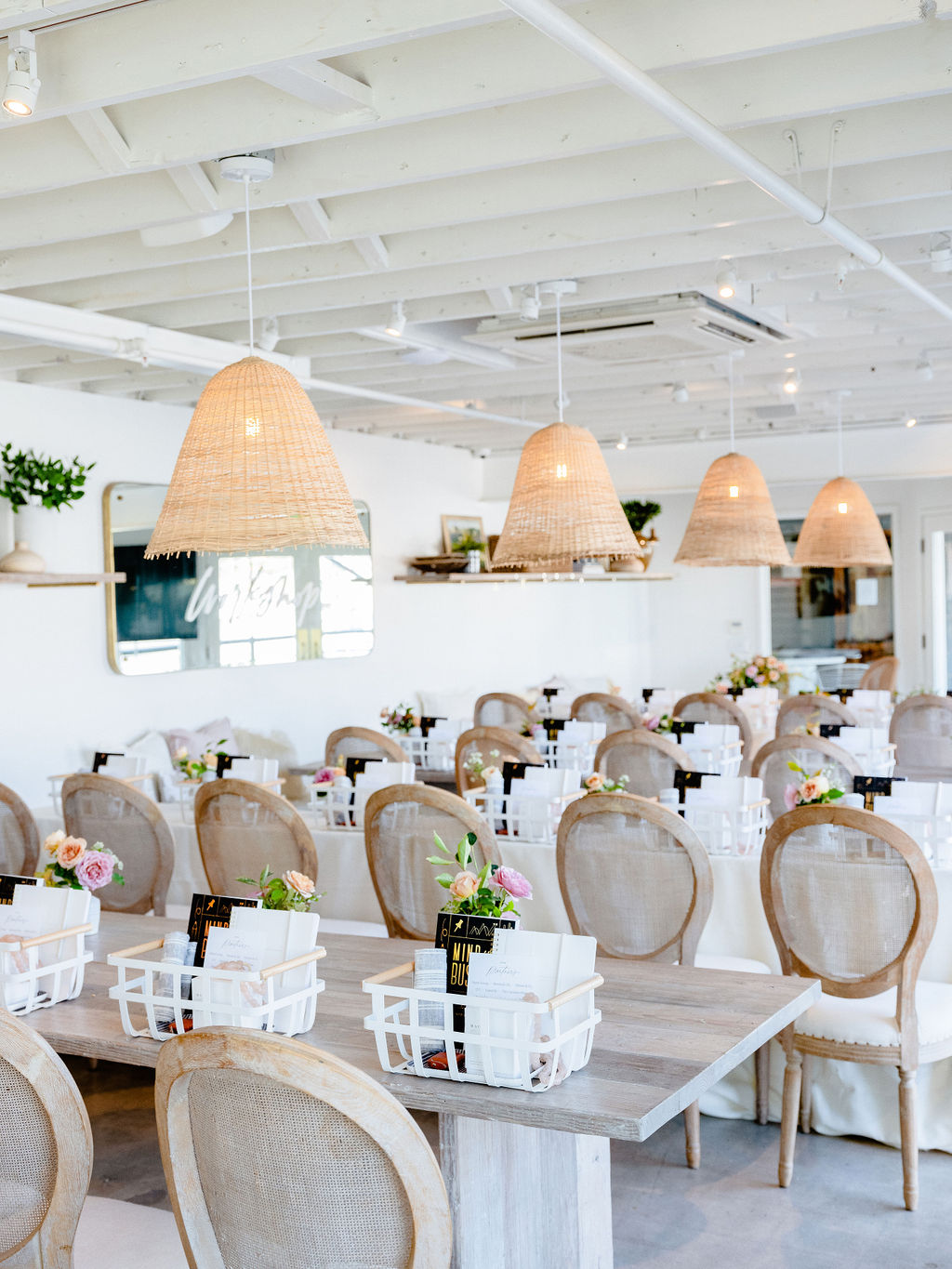 Beautiful Malibu Farm Event Venue with Rattan Pendant Lights