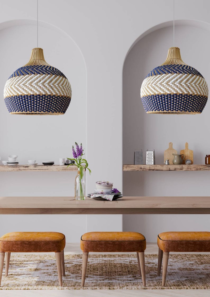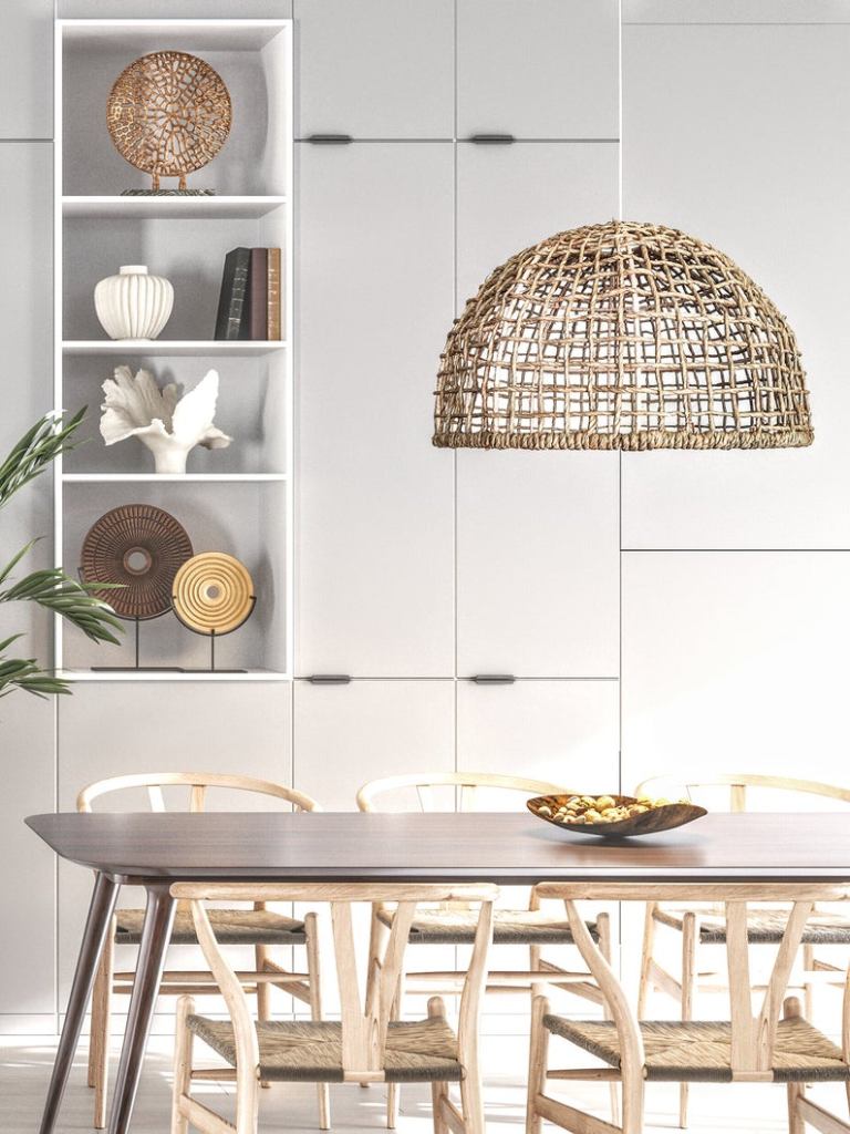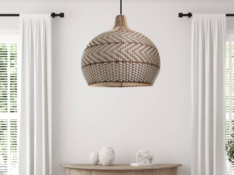 One thing I love about rattan and wicker. You can always shower them very quickly and put them under the sun. And when it withers, you can always coat them again with water based paint or use wood wax. White washed them is my favorite. The texture a handwoven rattan and wicker give to the whole interior design concept is eye entertaining. That’s why handwoven rattan and wicker texture are still in demand all the time. Check out this beautiful rattan pendant lights on Etsy home decor pendant light category.