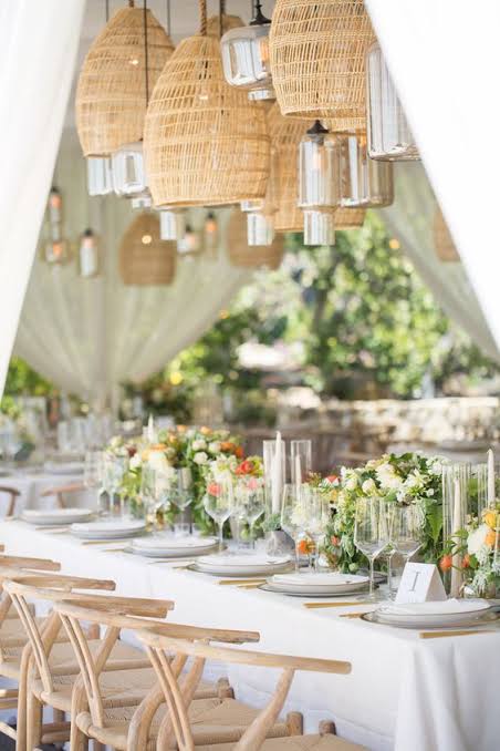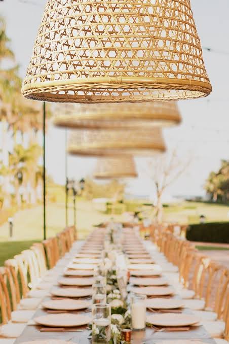The Knot is filled with million inspiration on how to decorate a wedding. What we like most is this wedding event designers who have used My Bali Living and Serena and Lily rattan pendant lights making the garden looks so special and beautiful.