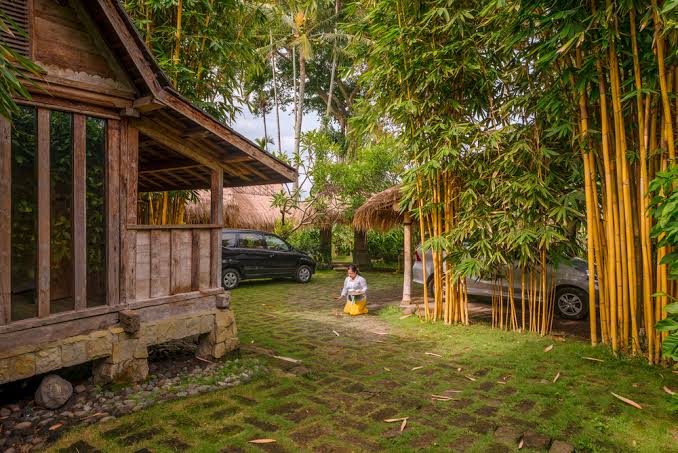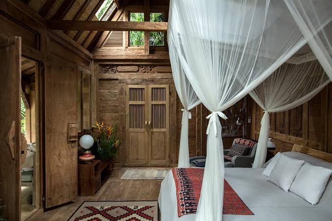 Each suite has its own private space and extensive garden and decks surrounding it. Three Suites are made from reclaimed teak wood houses — a Joglo, an Old Java House and a Gladak. Each grass-roofed suite features a spacious double bedroom, luxurious bathroom and a large wooden deck with an outdoor lounging area and open spaces for early morning yoga or meditation.