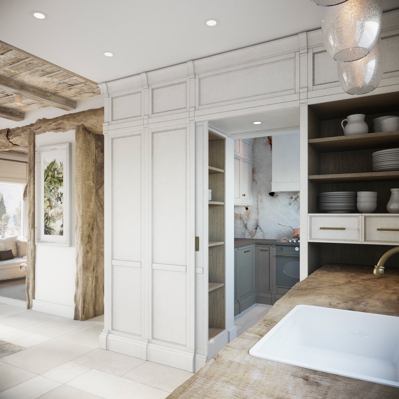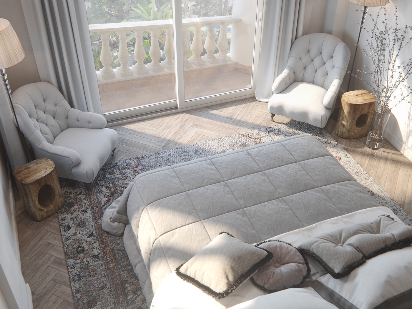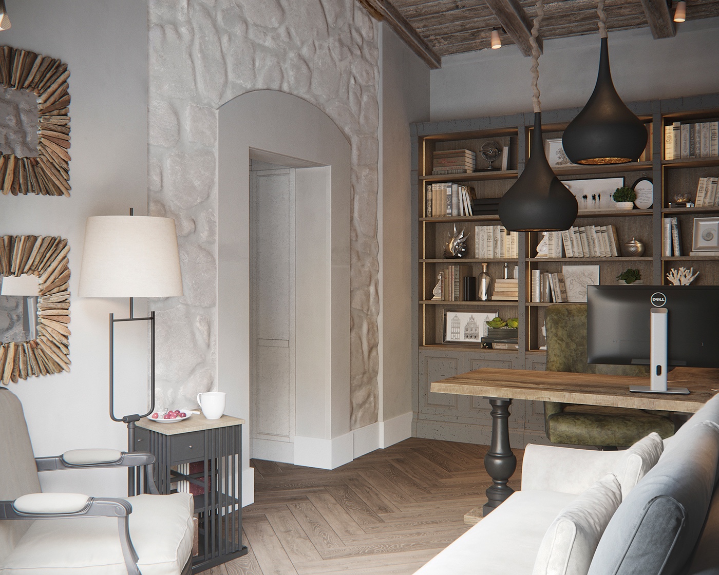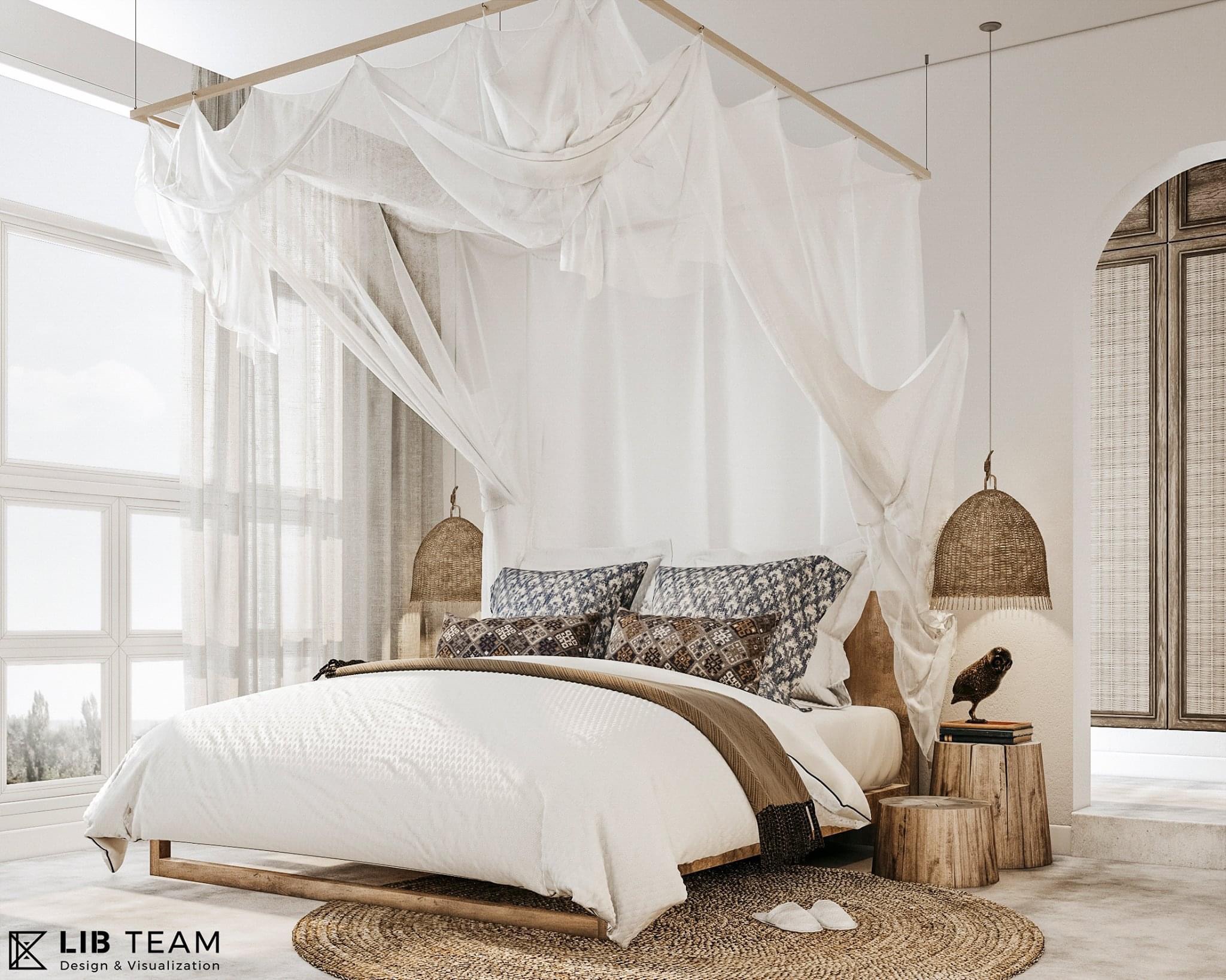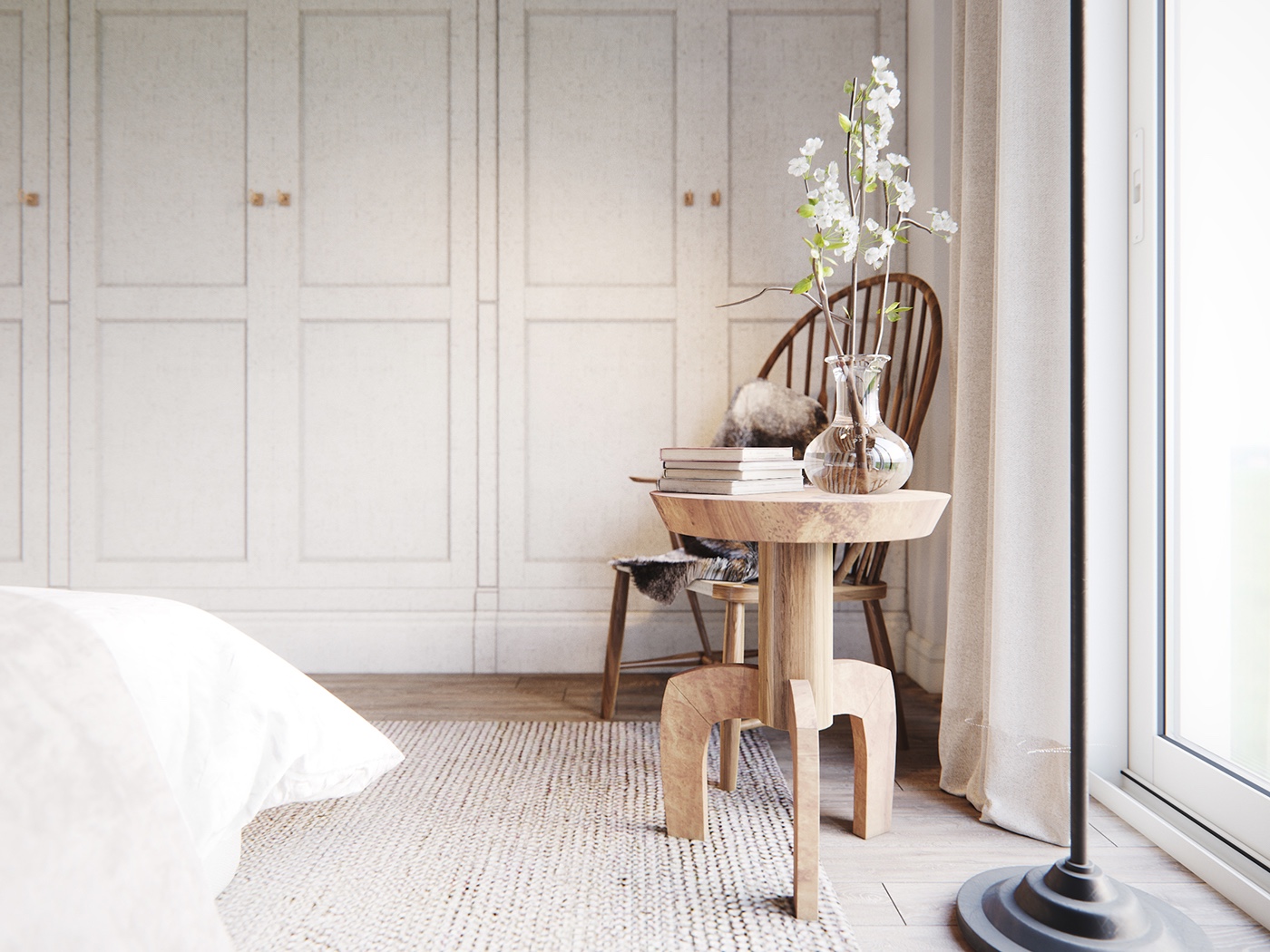 Jenya Lykasova created this visualization to entertain the rustic modern spirit in us. Her monochrome neutral filled with wood and rattan home decor truly captured our Mediterranean style admiration.