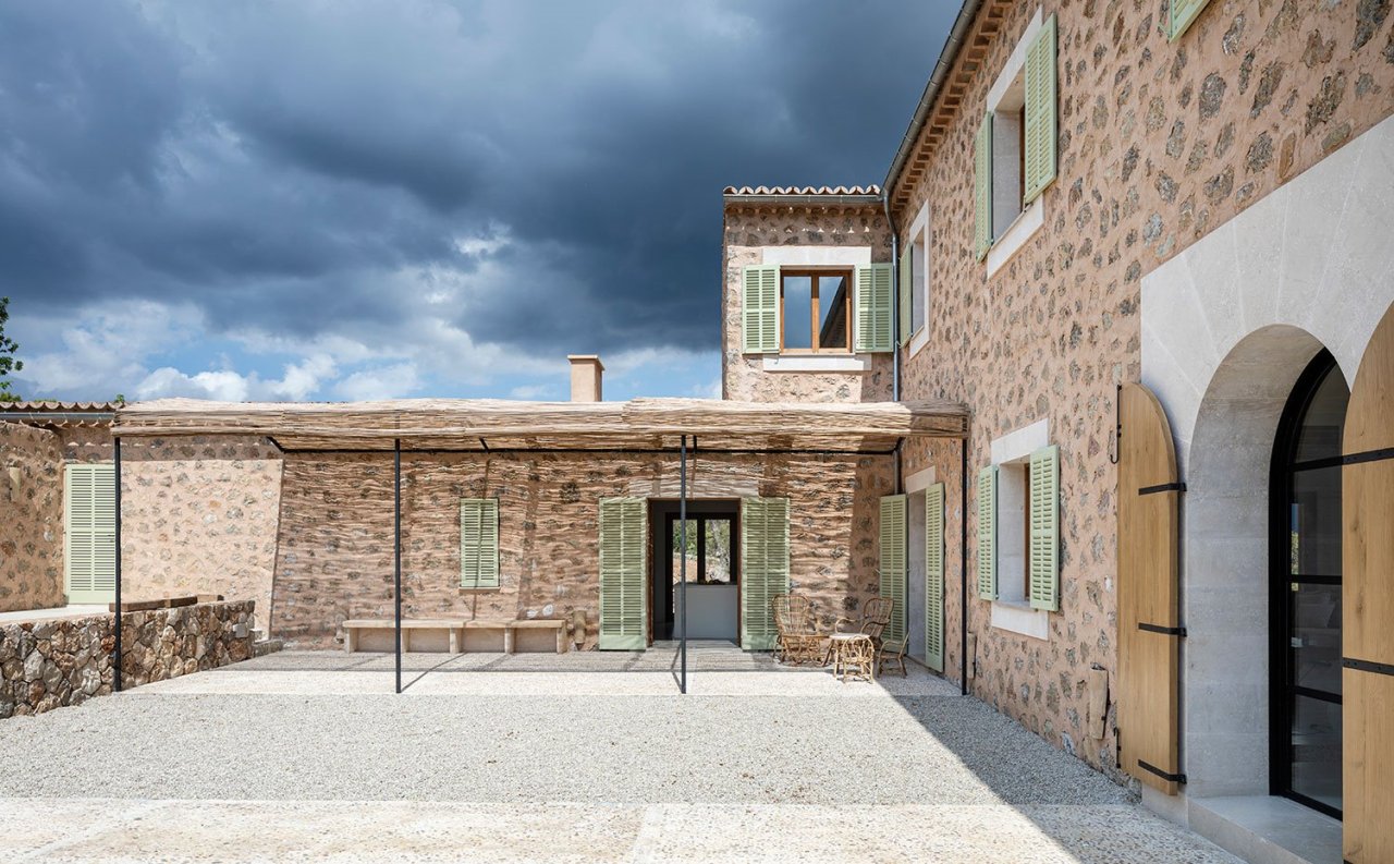 Mallorca, known as the island of calm, becomes the ideal enclave for this house, located in the municipality of Alaró, in the natural environment of the Sierra de Tramuntana. Beyond its long beaches and rugged coastlines, a country landscape surrounds this house characterized by its stone façade and shutters tinted in a cheerful light green. The two-story building has a large outdoor area, paved with pebbles, in which to comfortably enjoy the good weather that the island offers during much of the year.