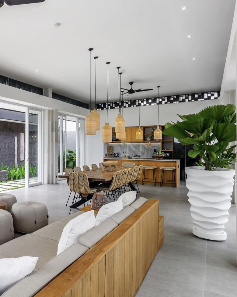 In summary, designers love Bali interiors with rattan pendant lights because they provide a relaxing and calming atmosphere, incorporate natural materials, create a cozy ambiance, and offer a seamless flow between indoor and outdoor spaces.