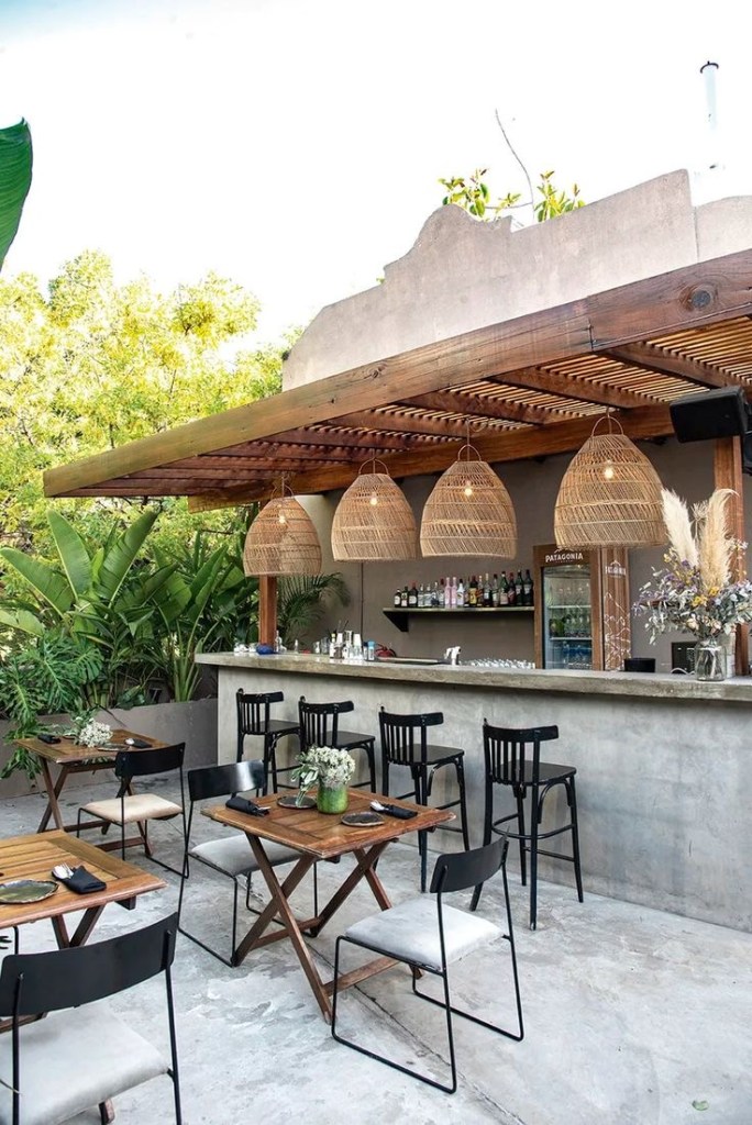 - Bohemian Vibe: Rattan’s woven and often intricate patterns give off a bohemian or tropical vibe. This style choice adds character and uniqueness to the space, making it stand out and providing patrons with a memorable and distinctive experience. The bohemian touch aligns with the relaxed and carefree atmosphere often associated with coastal living.