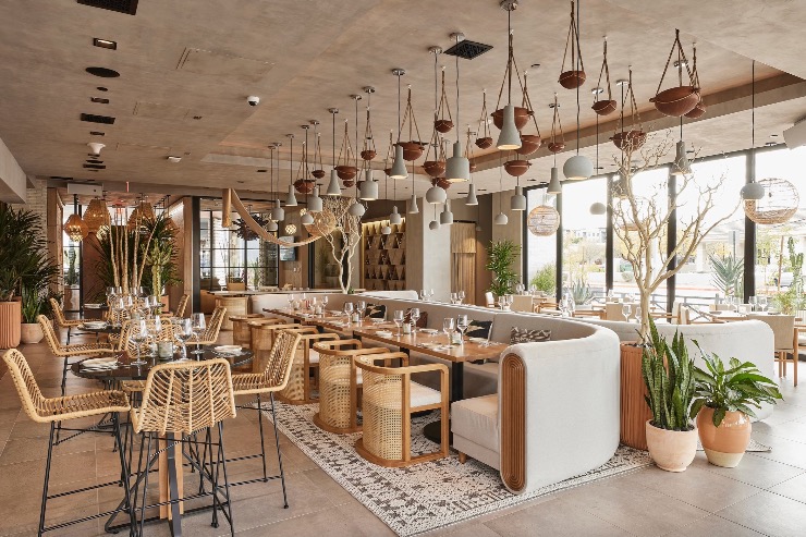 Dining chairs: Teak wood with rattan fabric. Pre-order here.