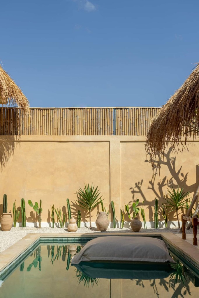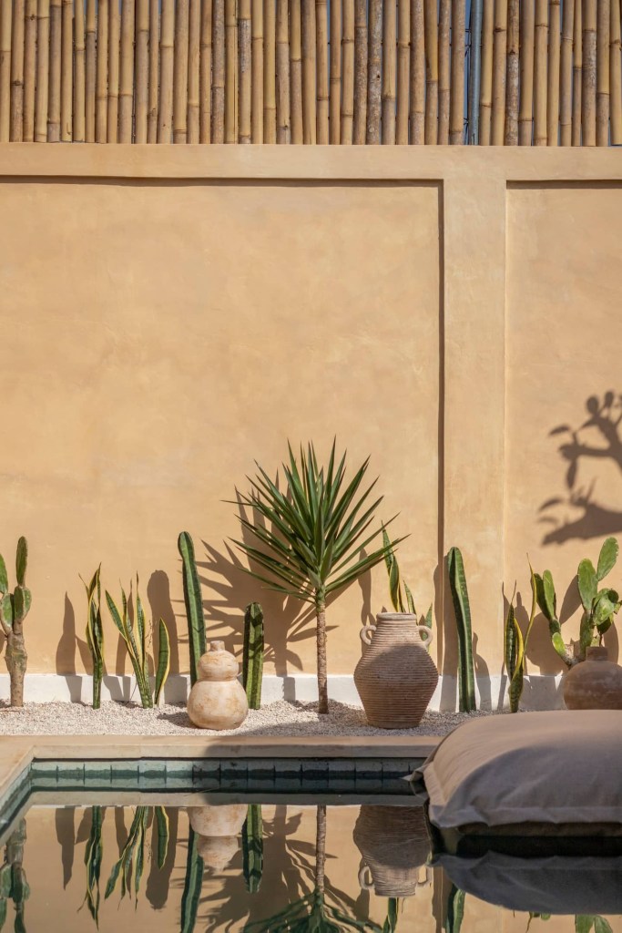 Palm trees and cacti adorn the surrounding walls, creating a vibrant and exotic atmosphere.